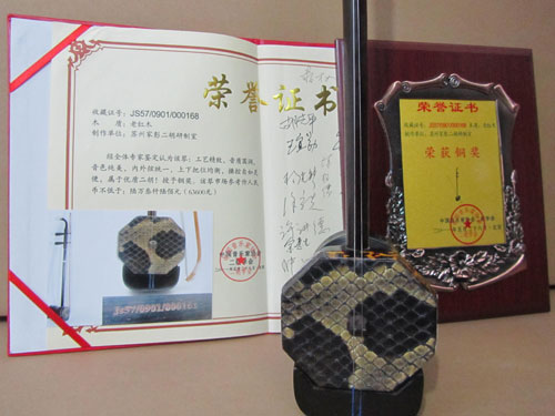 二胡制作大師丁家彭先生1949年出生樂(lè)器世家,17歲隨其祖父學(xué)琴藝,并深得精髓,其聰穎好學(xué),悉心鉆研與 探求二胡制作,博得同行的欽佩贊許,更得了許多知名演奏家的稱贊,充分認(rèn)識(shí)到二胡制作每個(gè)環(huán)節(jié),都對(duì)二胡制作都有影響力,因此對(duì)二胡的選材,選料,蟒皮都十分嚴(yán)格,二胡整體穩(wěn)定性良好,環(huán)境干擾影響極小。